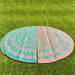 This unique floor covering provides a padding on your yurt tent floor to give your bare feet comfort while you glamp.  The "boho" design of each half-moon piece aligns together in the center and the color of each mat is reversed on the opposite side to suit your decor needs.